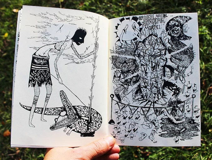 Fanzine contenant une douzaine de dessins tout droit sortie de carnets de dessins ou de papiers volés ici et là.